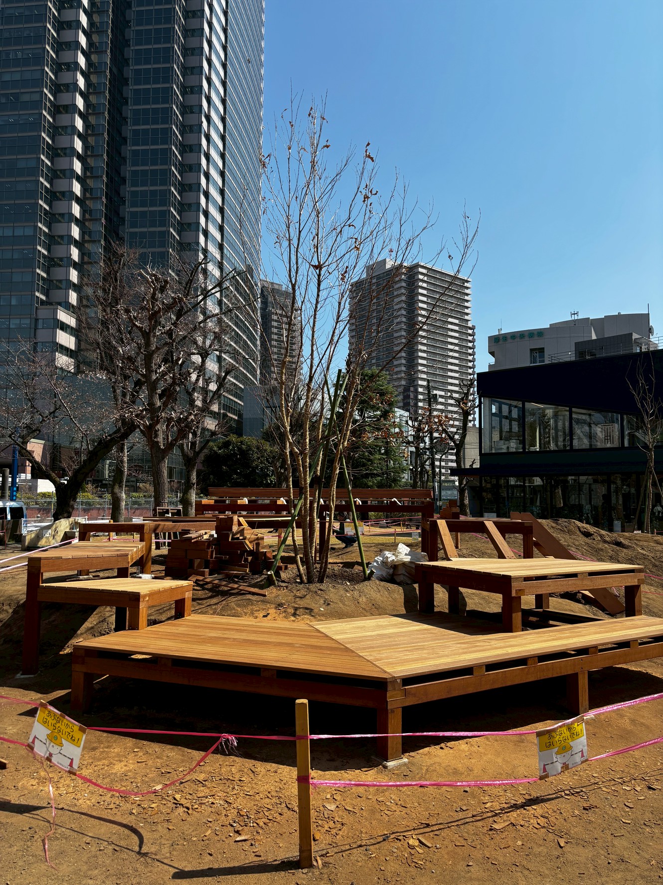 恵比寿南一公園では、木を植え、芝を張り、日陰と居場所をつくる。