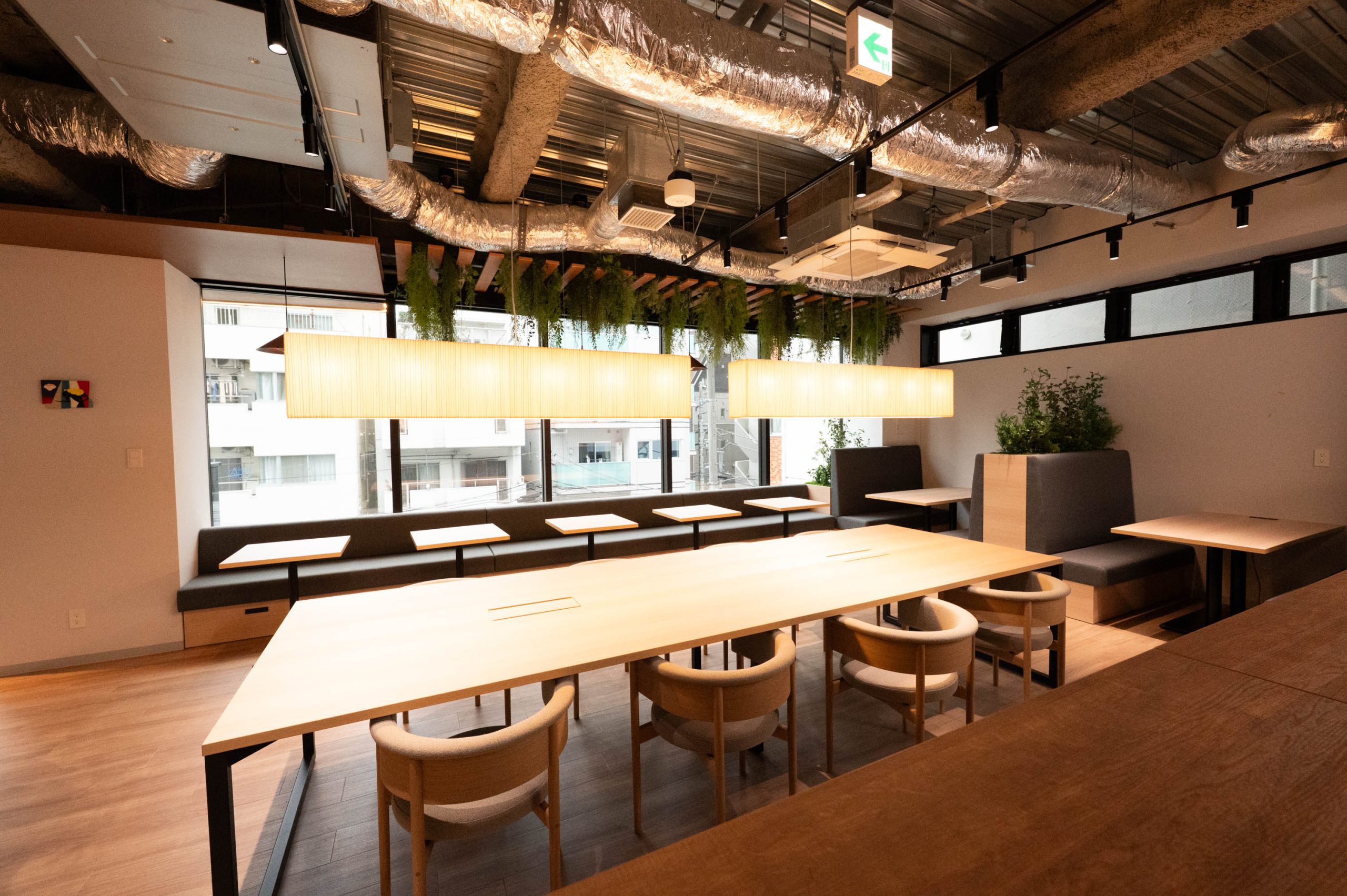 本物件では、入居者が快適に働き、創造的な時間を過ごせるよう、空間設計の細部にまでこだわりました。全フロアに安定したWi-Fi環境を完備し、会議室やオンライン会議用ブース、パントリーなど、日々の業務で必要となる機能を標準仕様として配置しています。照明にはサーカディアンリズム(概日リズム)に合わせて調光・調色が可能な機能を導入し、集中したい時間帯には明るくクリアな光を、夕方にはリラックスできる柔らかな光へと切り替え、心身への負担を軽減する光環境も設定できるなど、ストレスの少ないワークプレイスを実現しています。