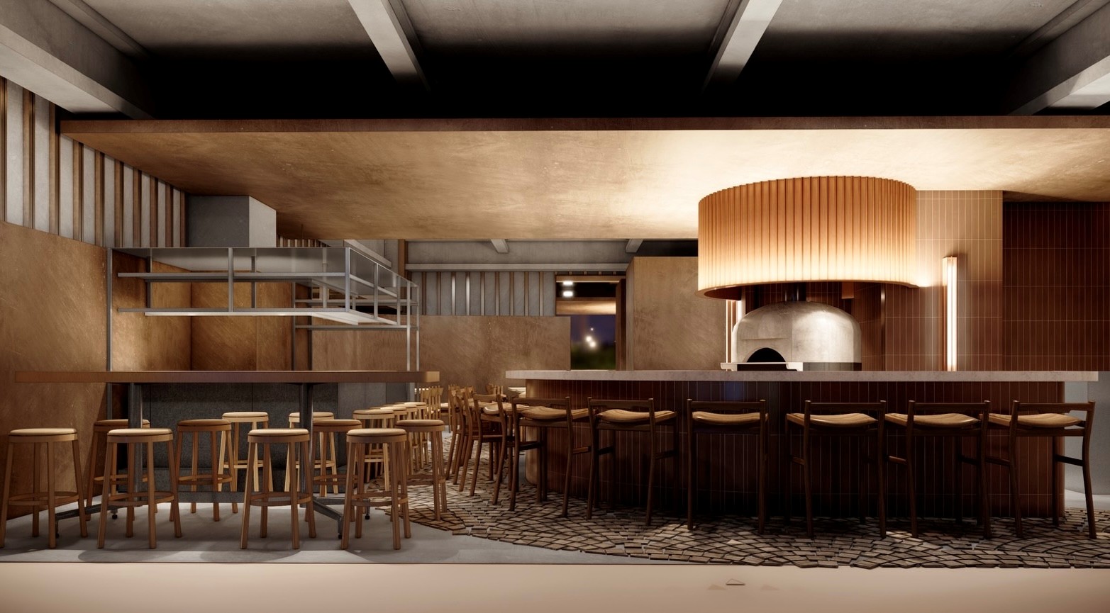 メニューはピザを中心に構成し、20〜30代をはじめとする幅広い層に親しまれることを目指します。また、上階のオフィスワーカーや近隣住民、周辺店舗とのつながりを育みながら、まちのにぎわいを広げていく場としての役割を担っていきます。