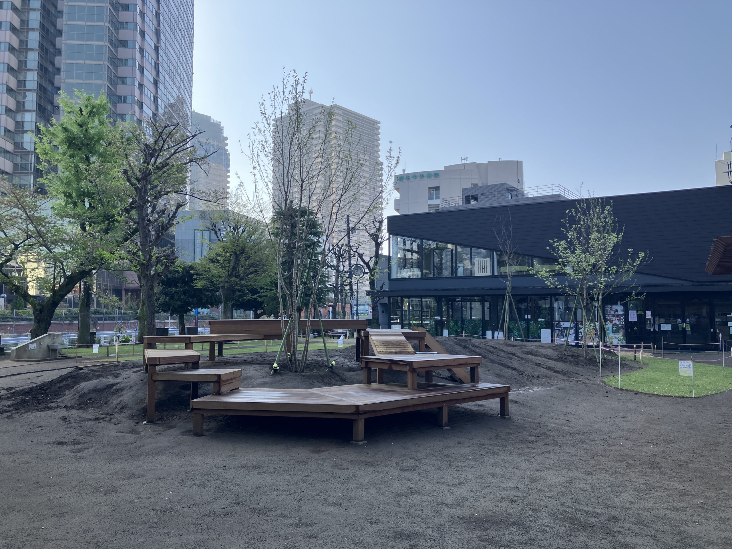 そこで、園内の「えびすどろんこ山プレーパーク」を運営する渋谷の遊び場を考える会を中心に、公園所有者である渋谷区、公園管理者である当社の三者は、気候や天候に左右されにくく、より快適に公園を利用できる環境の実現を目指し協議を重ね、植樹による木陰づくりや庇の設置などの緑化整備について検討を進めてきました。