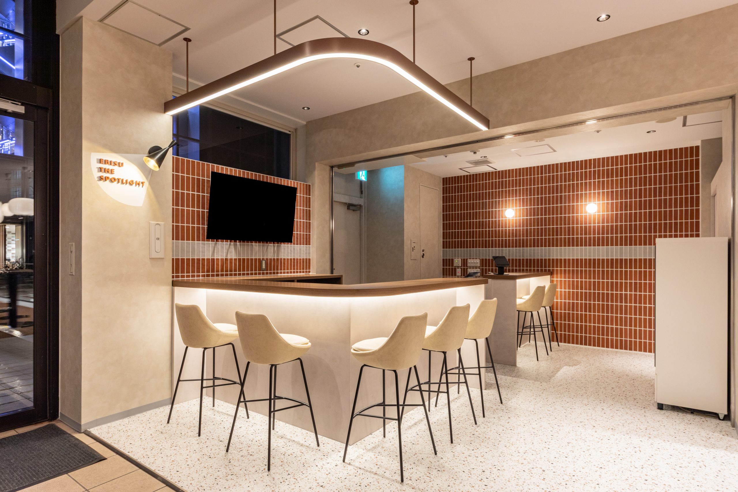 「EBISU THE SPOTLIGHT(エビス ザ スポットライト)」は、恵比寿ガーデンプレイス内に設けられた、スタートアップエコシステムの形成を目的とする拠点です。7席のバーカウンタースペースと、最大40名程度が収容できるスタンディングスペースで構成された飲食可能な空間で、プロジェクターや音響設備、ホワイトボードなどの設備を備えています。